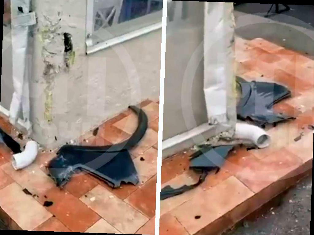 На фотографиях с места происшествия видно, что штукатурка разбита, а водосточная труба погнута. Пол около поврежденного участка усыпан обломками пластика, предположительно, это части крыла машины.