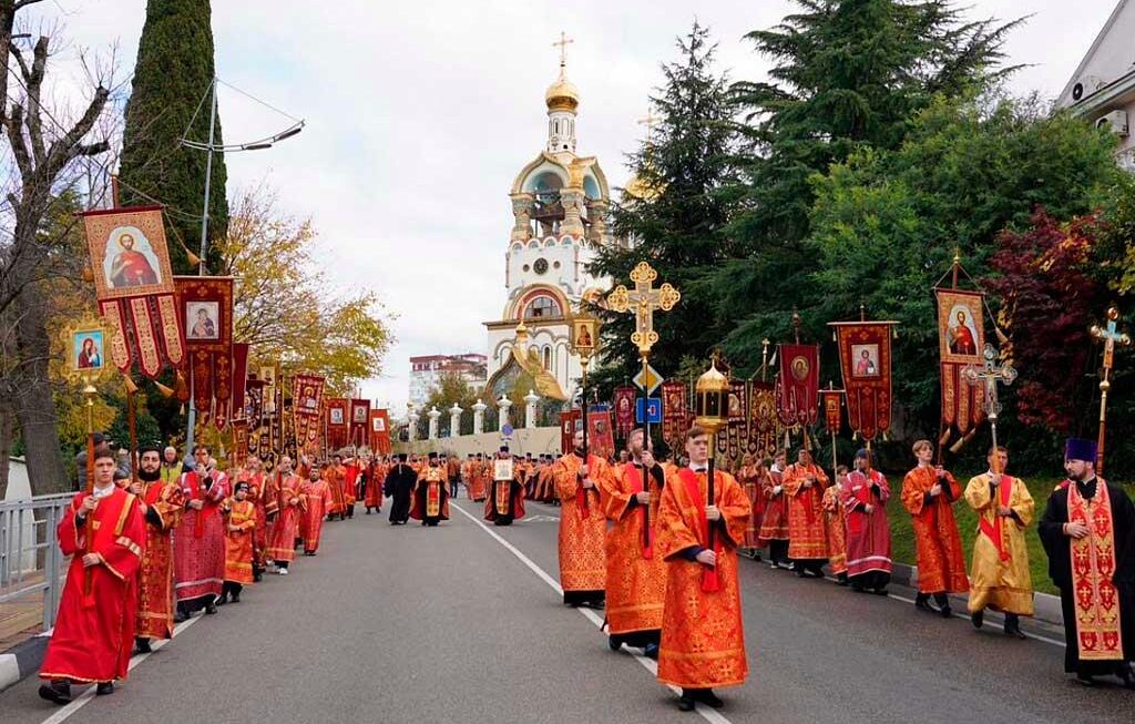 С 8:30 начнутся богослужения во всех храмах города, а шествие стартует в 11:00 от Собора равноапостольного Князя Владимира. Участники пройдут по улицам Виноградная, Егорова, Курортный проспект, Поярко, Несебрская, Москвина и Орджоникидзе до собора Архангела Михаила. С 10:00 до 14:00 будет ограничено движение на этих улицах для автотранспорта.
