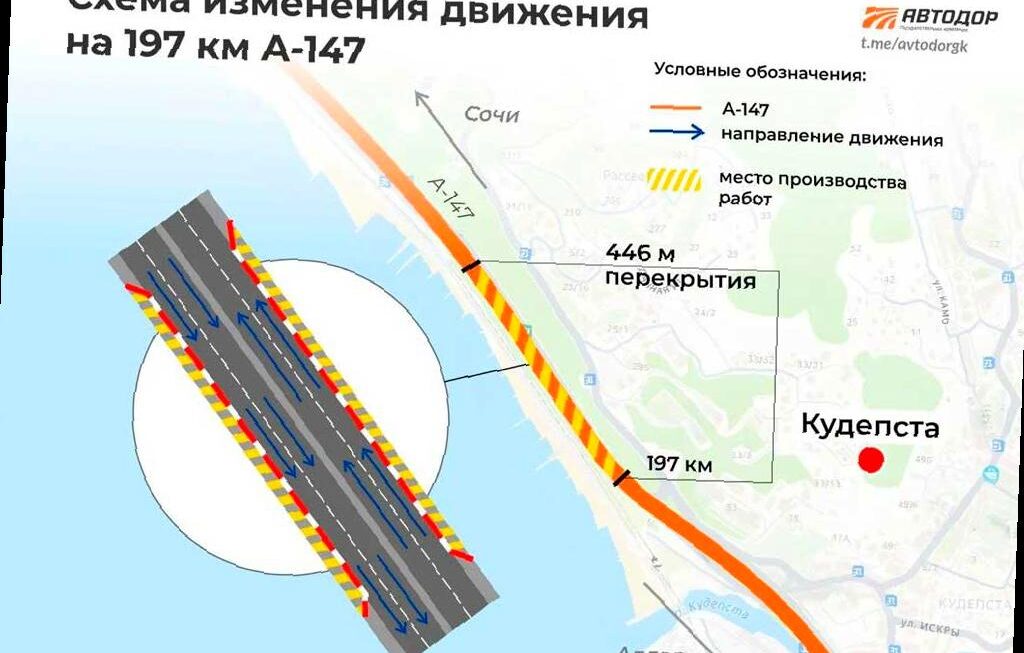 Эти изменения связаны с строительством примыкания обхода Адлера. На данном участке будут установлены удерживающие сооружения, а в будущем начнется реконструкция трассы А-147, как сообщает администрация Сочи.